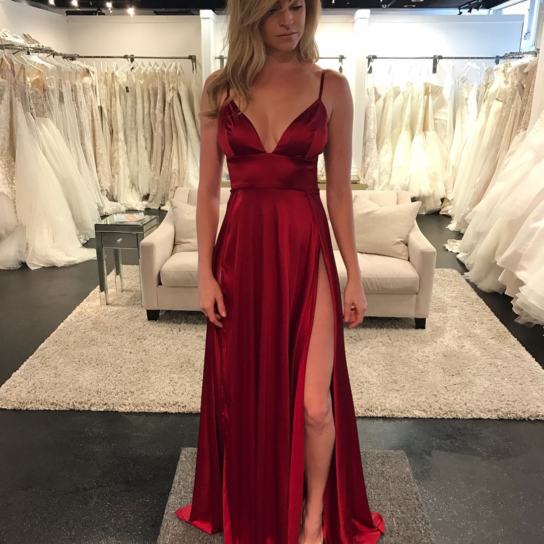Burgundy Spaghetti straps V neck Prom Dress, Sexy Backless Split Prom Dresses, Formal Evening Dresses, Wedding Party Dress, 062