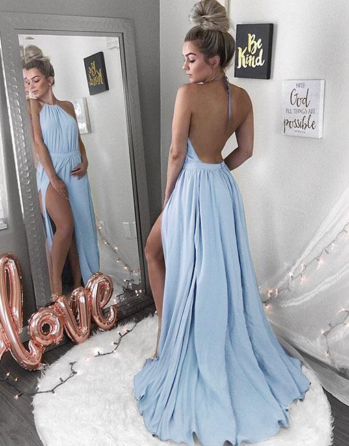 Halter Split Prom Dress, Sexy Backless Satin Prom Dresses, Wedding Party Dress, Evening Party Gowns, 119