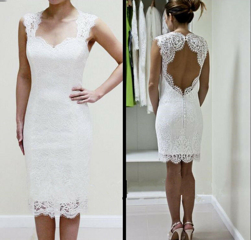 White Lace Sheath Prom Dress, Open Back Short Prom Dresses, Wedding Party Dress, Evening Party Gowns, Homecoming Dress, 204
