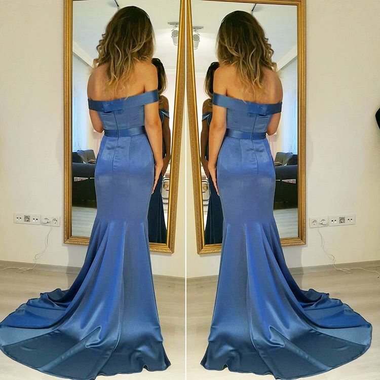 Blue Mermaid Prom Dress, Off the Shoulder Side Slit Satin Prom Dresses, Wedding Party Dress, Evening Party Gowns, Wedding Guest Dresses, 206