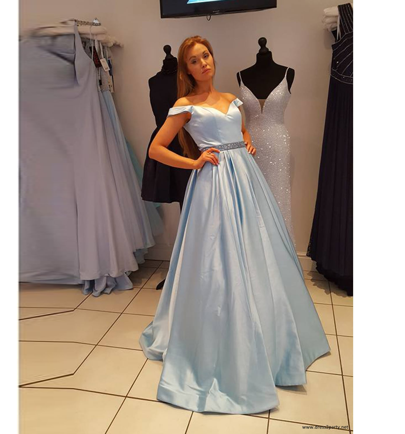 Blue Satin Prom Dress, A line Off the Shoulder Prom Dresses, Wedding Party Dress, Evening Party Gowns, Wedding Guest Dresses, 209