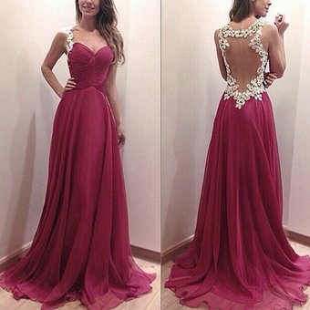 Burgundy Appliques Prom Dress, Pleat Backless Chiffon Prom Dresses, Wedding Party Dress, Evening Party Gowns, Wedding Guest Dresses, 211