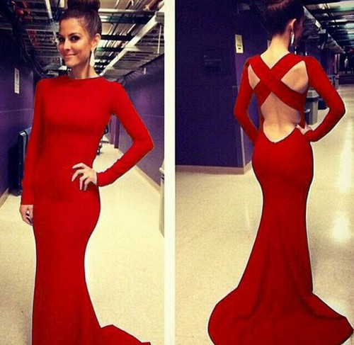 Red Mermaid Prom Dress, Long Sleeve Backless Prom Dresses, Wedding Party Dress, Evening Party Gowns, Wedding Guest Dress, 233