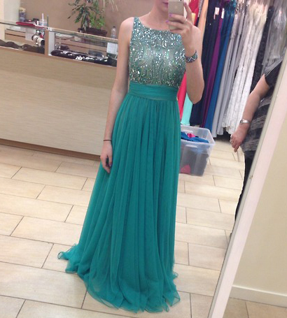 Emerald Beading Tulle Prom Dress, Prom Dresses,Graduation Party Dresses, Prom Dresses For Teens, 293