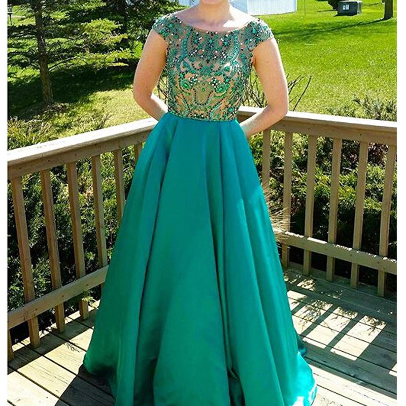 Charming Evening Dress,Cap Sleeve Beaded Prom Dress,Long Prom Dresses,Elegant Prom Dress, 296