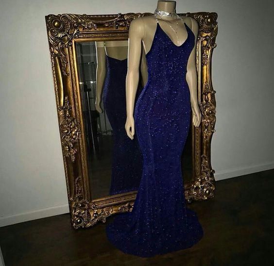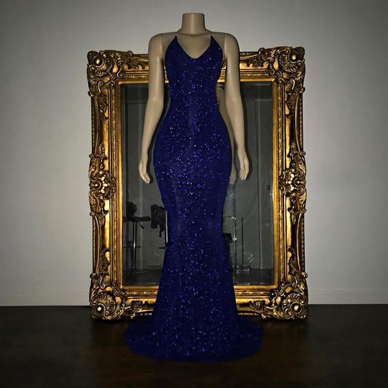 Royal Blue Off the Shoulder Mermaid Prom Dress, Halter Backless Sequins Prom Dresses, Wedding Party Gowns, Evening Party Gowns, 413