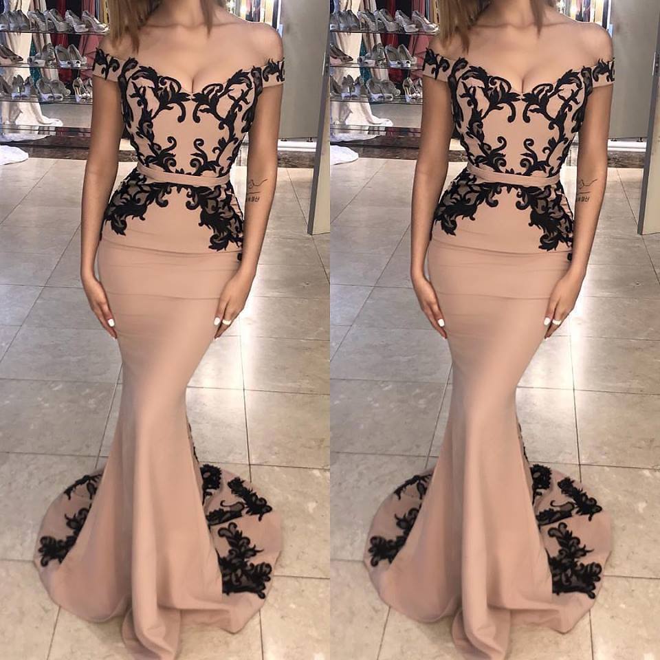 Off the Shoulder Mermaid Prom Dress, Appliques Satin Prom Dresses, Wedding Party Gowns, Evening Party Gowns, 414