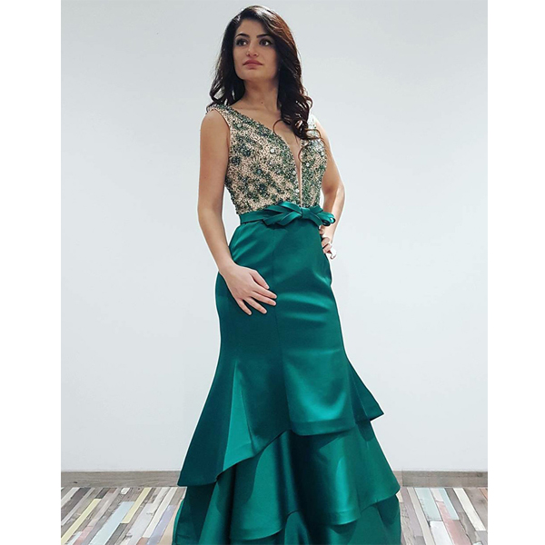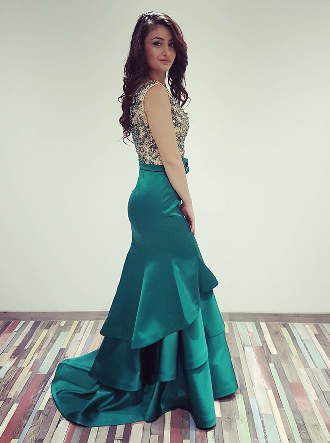 V neck Beaded Mermaid Prom Dresses, Wedding Party Gowns, Evening Party Gowns, Wedding Guest Dresses, 440