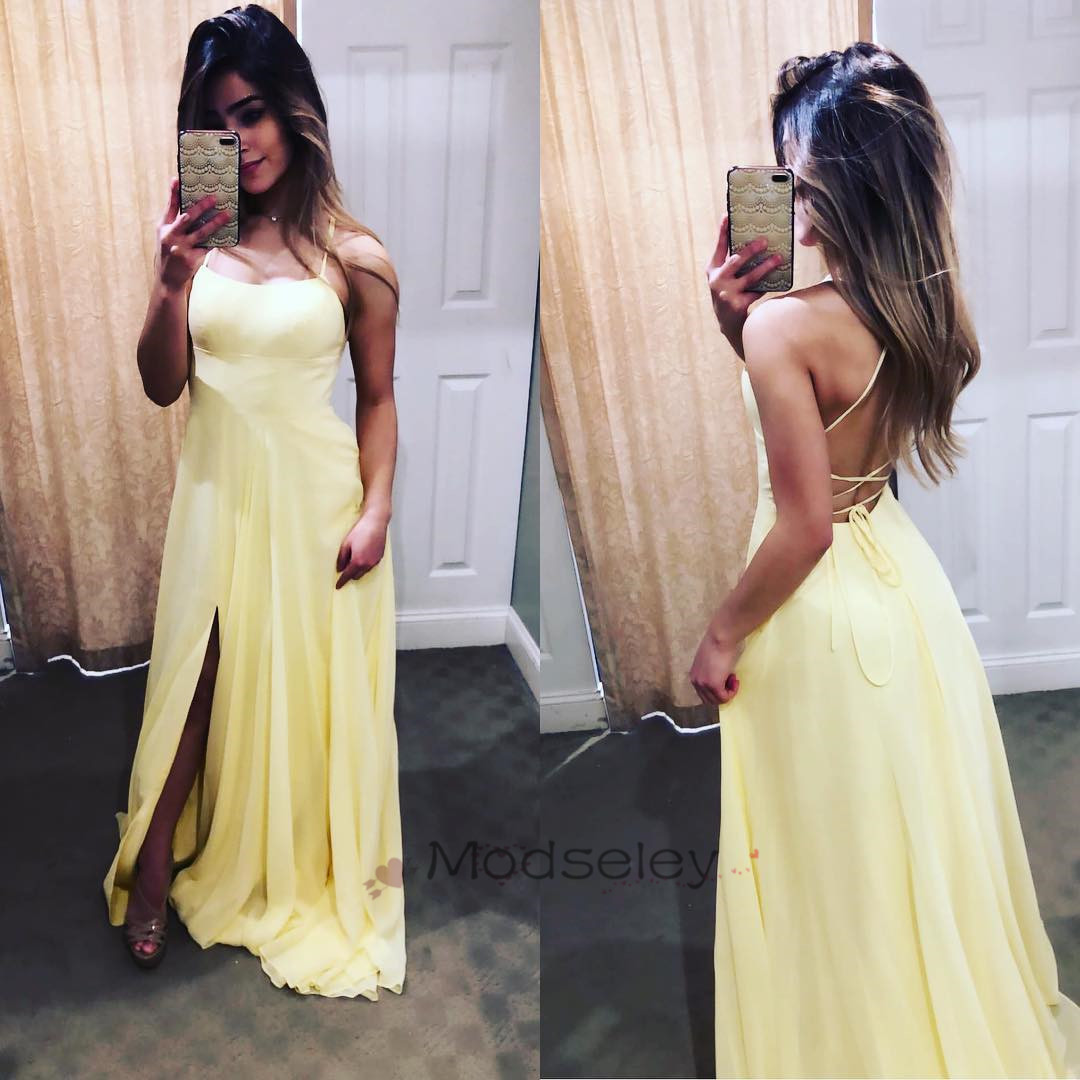 Simple Straps Yellow Long Prom Dress with Lace Up Back, 459