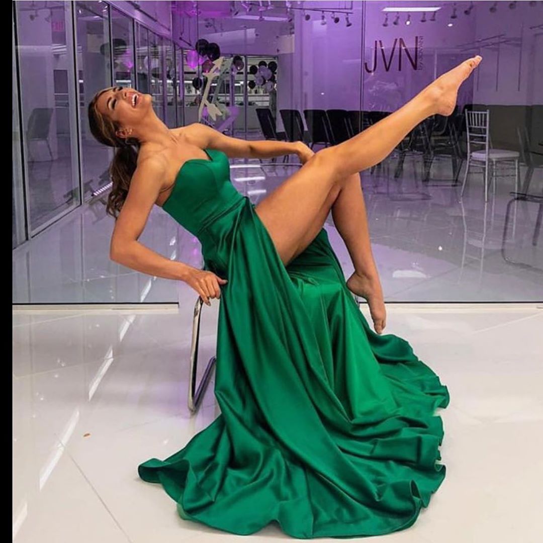 Simple Sweetheart Green Long Evening Dress with Slit, 472