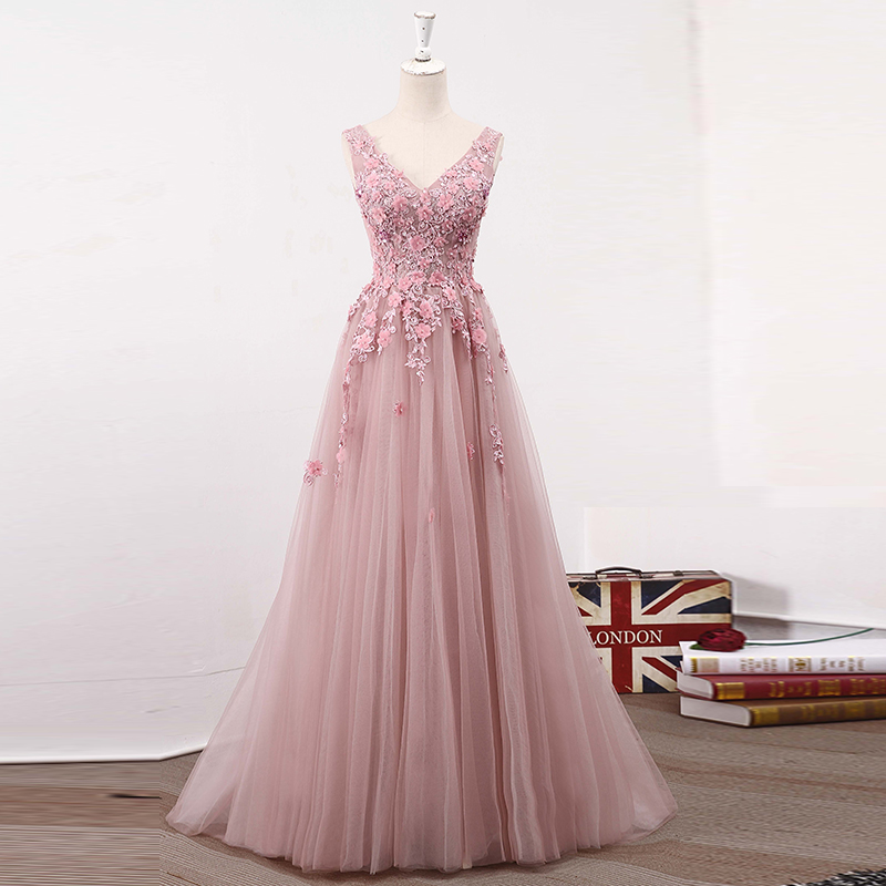 Blush Pink V Neckline Two Straps Lace Evening Prom Dresses, 2018 Party Prom Dress, Custom Long Prom Dress, Cheap Party Prom Dress, 513