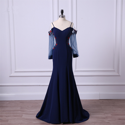 Long Prom Dresses, Jersey Prom Dresses, Long Sleeve Prom Dresses, Straps Evening Dresses, Mermaid Prom Dresses , Floor-Length Prom Dress, 586