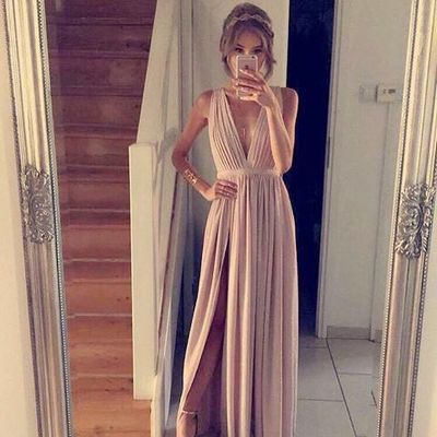 A-line champagne chiffon long prom dress,formal dresses,Long Prom Dresses,Evening Dresses,609