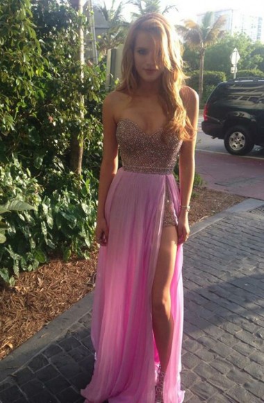 A-Line Sweetheart Sweep Train Split-Side Purple Chiffon Prom Dress with Beading, 620