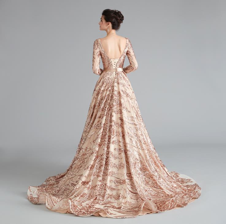 Long Sleeves Sequins Prom Dress, Ball Gown Backless Prom Dresses, Formal Evening Dresses, Wedding Party Dress, 385