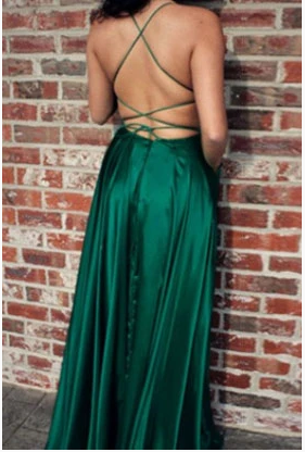 Simple White Scoop High Slit Satin Prom Dresses, Long Cheap Prom Gowns, 648