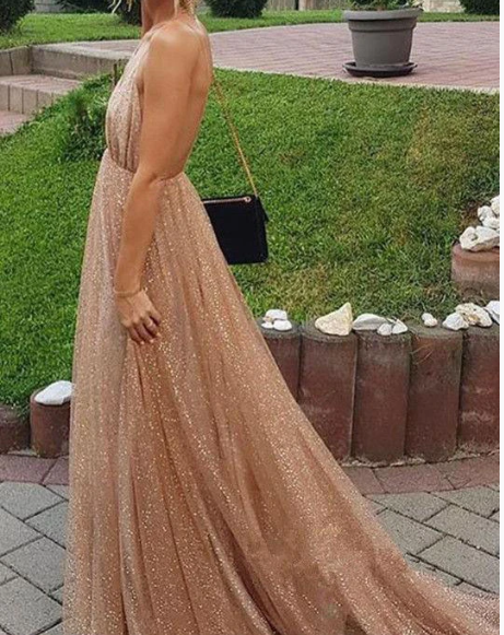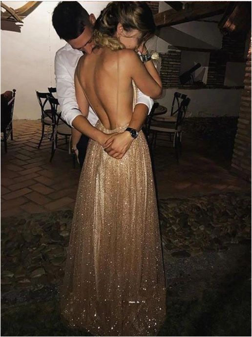 Sexy A-line Spaghetti Straps Deep V-neck Sexy Backless Sequins Prom Party Dresses, 654