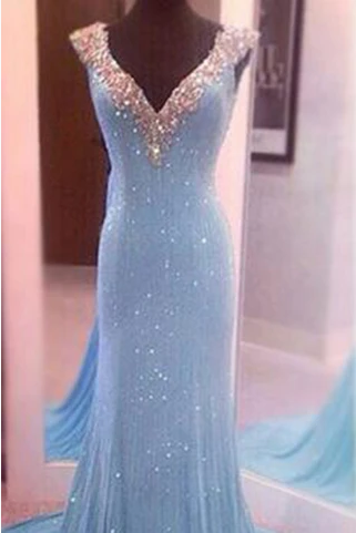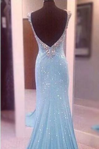 Largos Pretty V-Neck Sleeveless Sequins Mermaid Backless Floor-Length Long Prom Dresses, 686