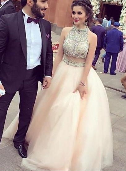 Two Pieces Ball Gown Long Prom Dresses,Quinceanera Dresses,Beaded Prom Gowns,Evening Gowns, 712