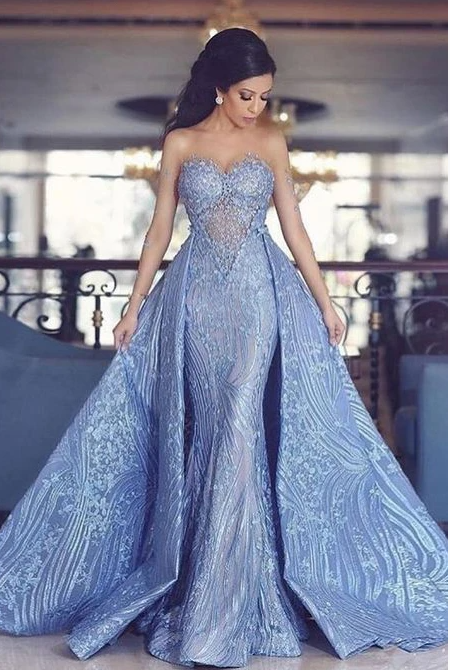 Elegant Sweetheart Mermaid Prom Dress With Detachable Train,Fashion Blue Evening Dresses,811