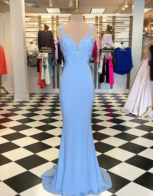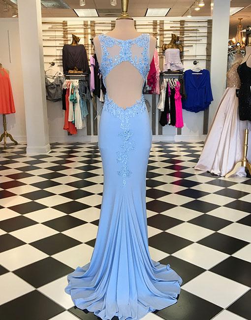 Elegant blue mermaid lace prom dress,backless evening dresses,893