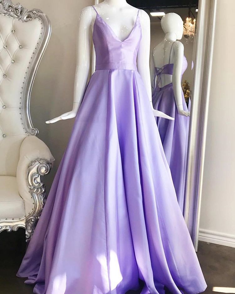 Princess Blue/Lilac V-Neck Prom Dress,Long Ball Gowns With Pockets,Pretty Party Dress,901