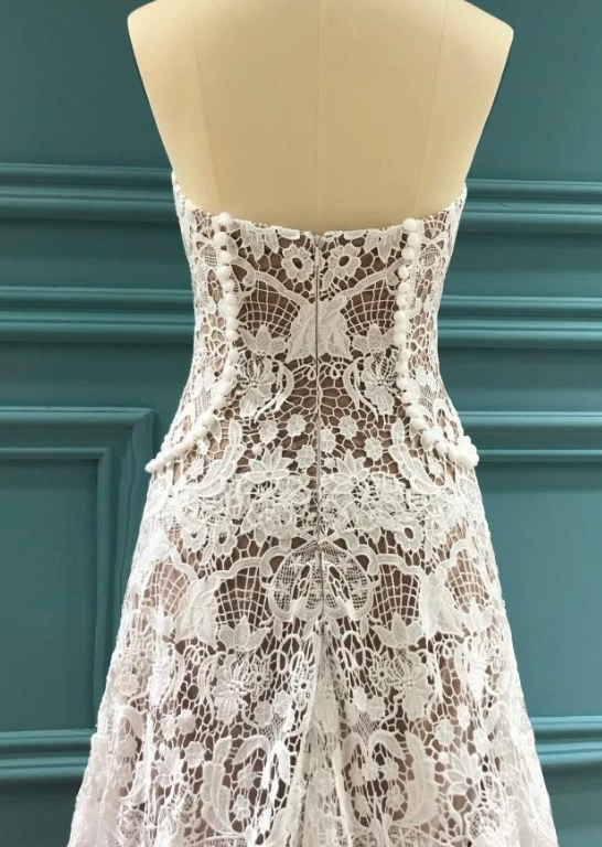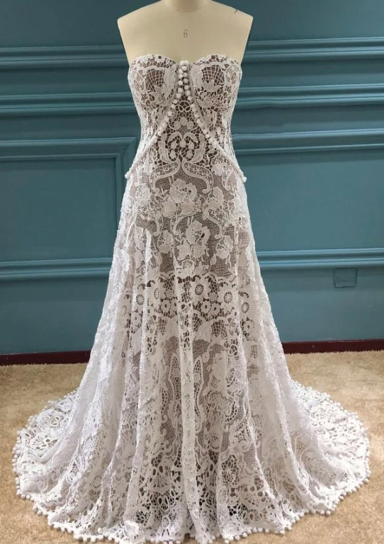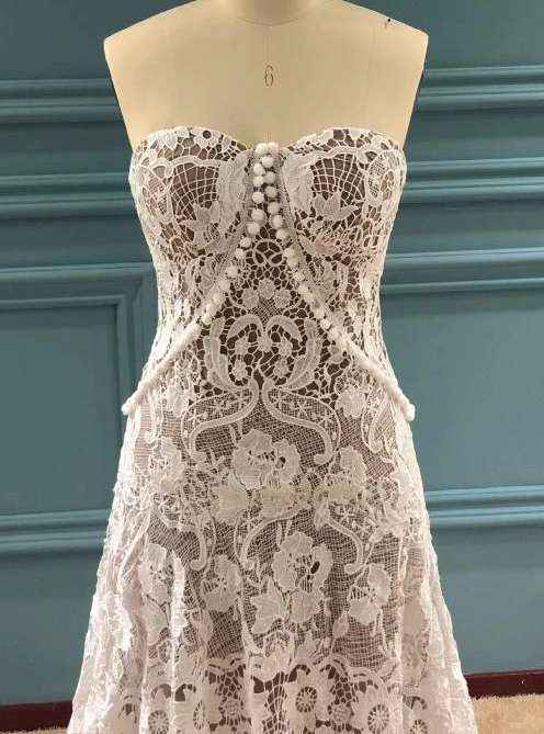 Elegant A Line Lace Appliques Sweetheart Strapless Wedding Dresses,810