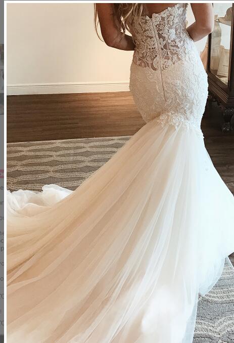 Custom Made Sweetheart Neckline Tulle Mermaid Long Wedding Dress with Appliques,874