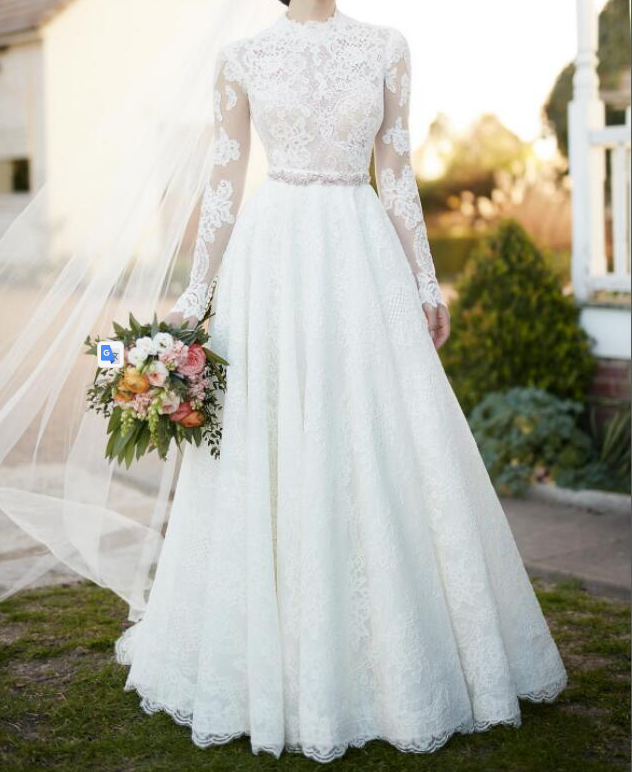A Line White Full Lace Long Sleeve Wedding Dress,Formal Elegant Romantic Wedding Gown,Full Lace Simple Elegant Romantic Wedding Dress,958