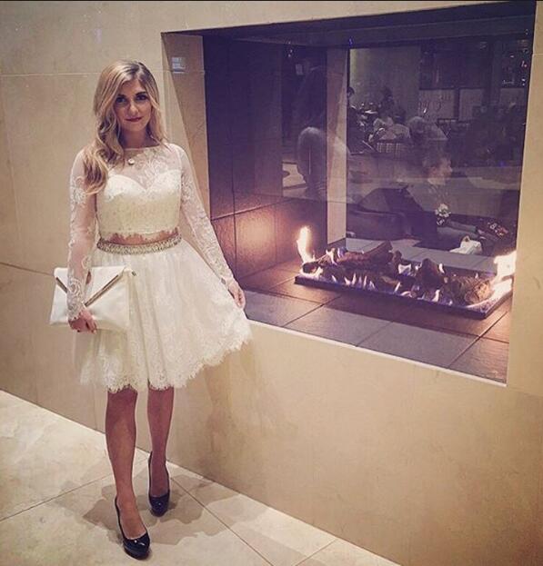 White/Ivory 2 Pieces Short Prom Dress, Long Sleeves Lace Homecoming Dress, Mini Prom Dresses, Party Dresses, Cocktail Homecoming Dresses, 198