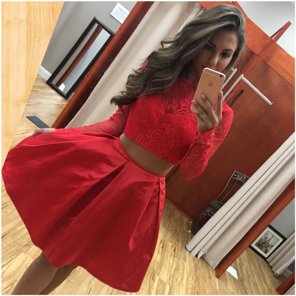 Long sleeve short prom dresses,red lace party dress,satin homecoming dresses,homecoming dresses short prom dresses party dresses,902