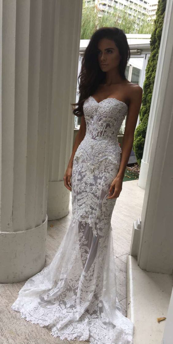 Elegant White Lace Wedding Dress, Off the Shoulder Mermaid Modern Wedding Dresses, See Through Sheath Wedding Dresses, Bridal Gowns,058