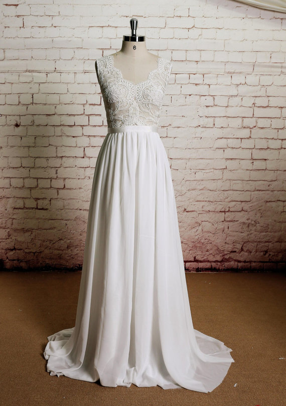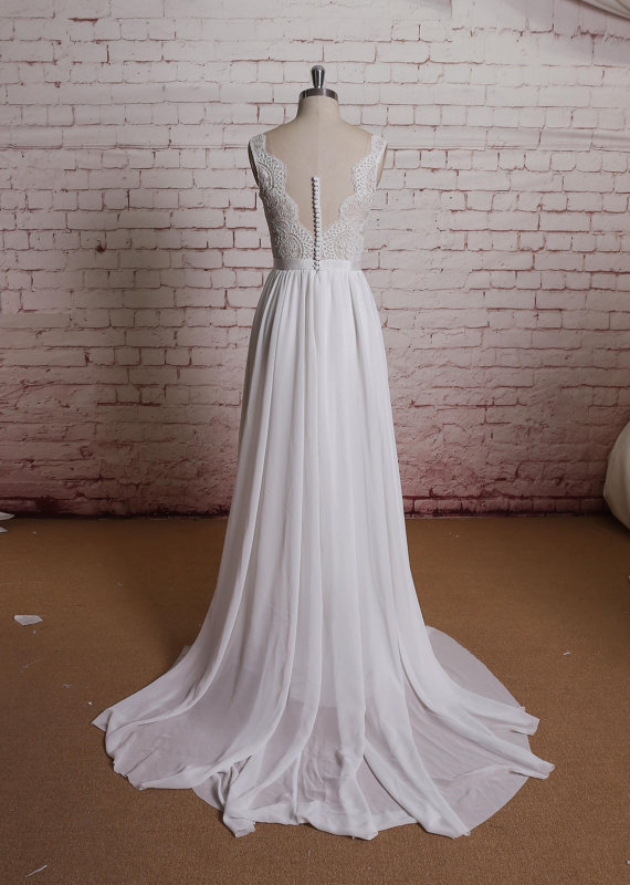 White/Ivory Lace Wedding Dress, A line Chiffon Wedding Dresses with Sweep Train, Cheap Bridal Gowns, Beach Wedding Dress, 124