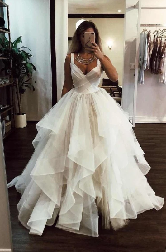 White/Ivory Ruffles Ball Gown Wedding Dress, Spaghetti straps Tulle Wedding Dresses, Bridal Gowns, 268