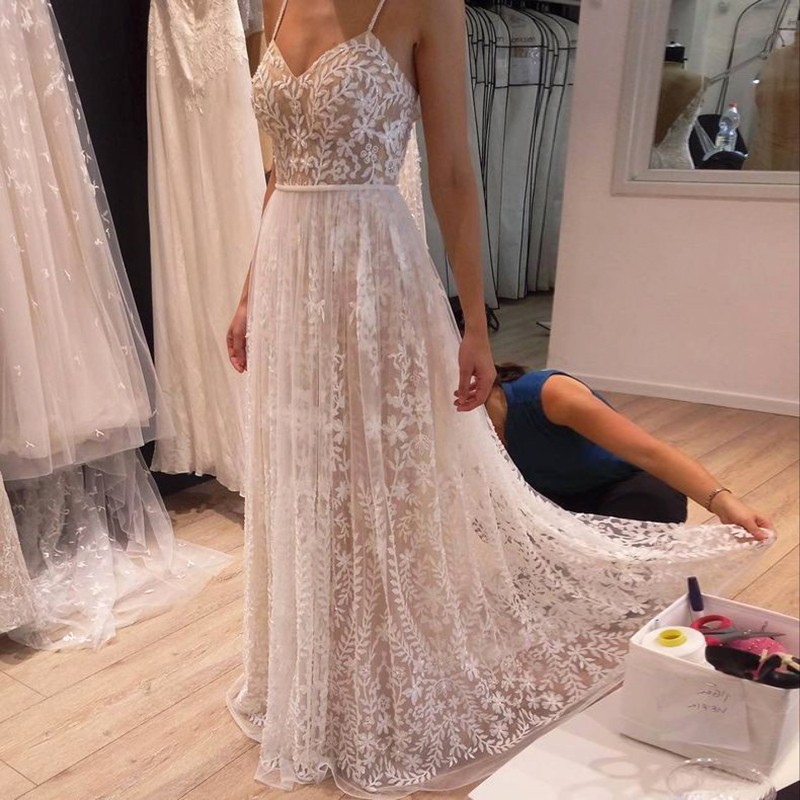 Spaghetti straps Lace Wedding Dress, Sweetheart Sleeveless Boho Wedding Dresses, Modern Simple Beach Wedding Dress, Bridal Gowns, 316