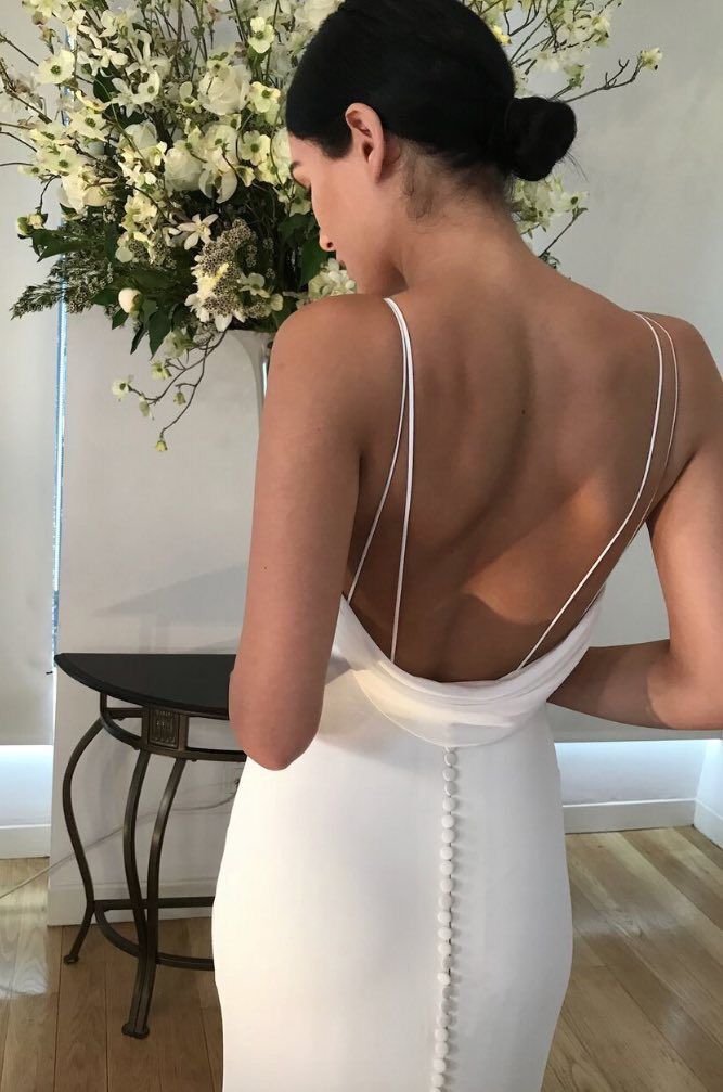 Sexy Satin Mermaid Wedding Dress, Spaghetti straps V neck Boho Wedding Dresses, Modern Beach Wedding Dress,Backless Bridal Gowns, 331