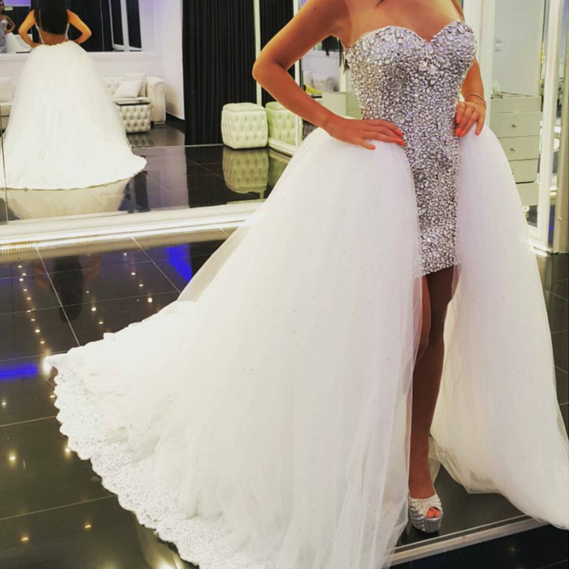White Off the Shoulder Beading Wedding Dress, Detachable Skirt Vestido De Novias, Ball Gown Bridal Gowns, 603