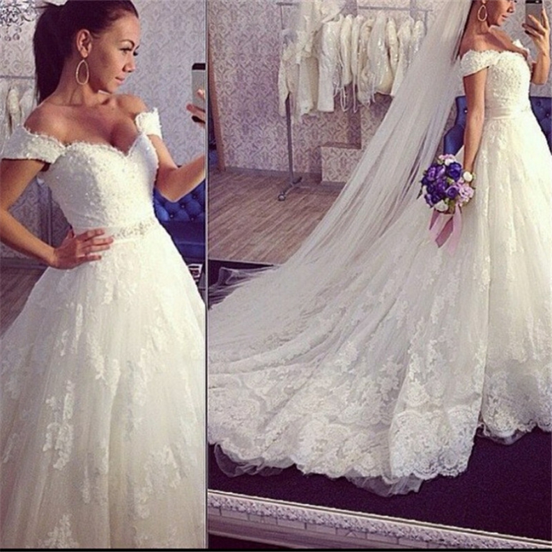 Elegant V Neck White Beaded Lace Ball Gown Wedding Dress, Bridal Gowns, 744