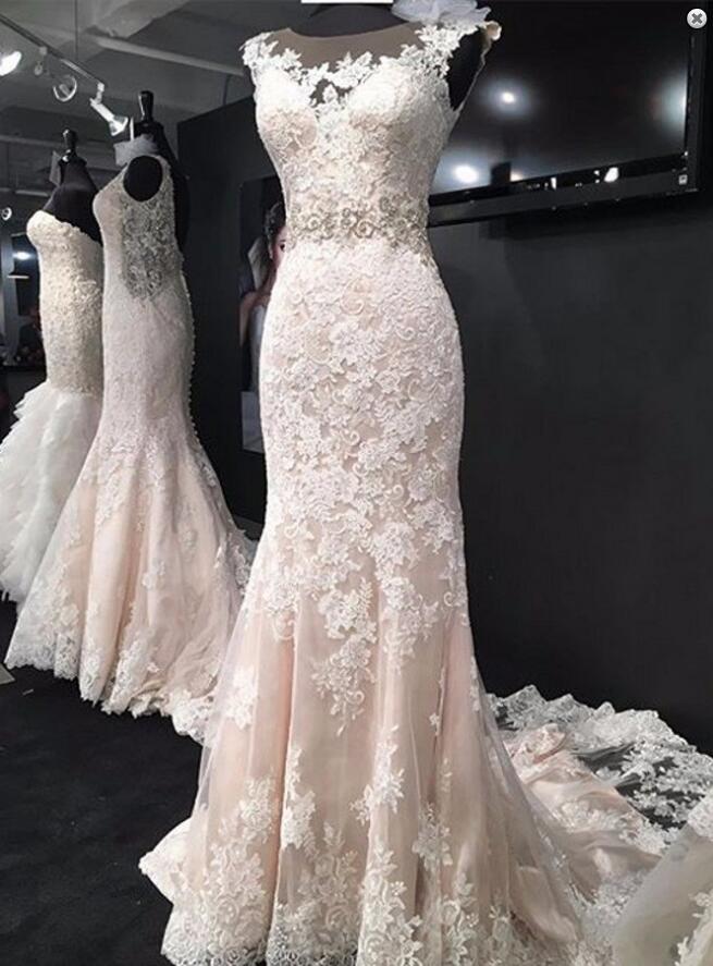 Gorgeous Appliques Lace Mermaid Wedding Dress with Beading Waistband, Dresses For Brides, Bridal Gown, 774
