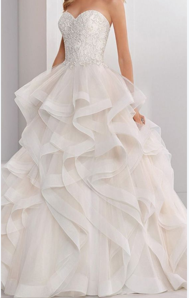 Elegant Tulle Sweetheart Ball Gown Wedding Dress, Off the shoulder Lace Beaded Ruffles Bridal Dresses, 777