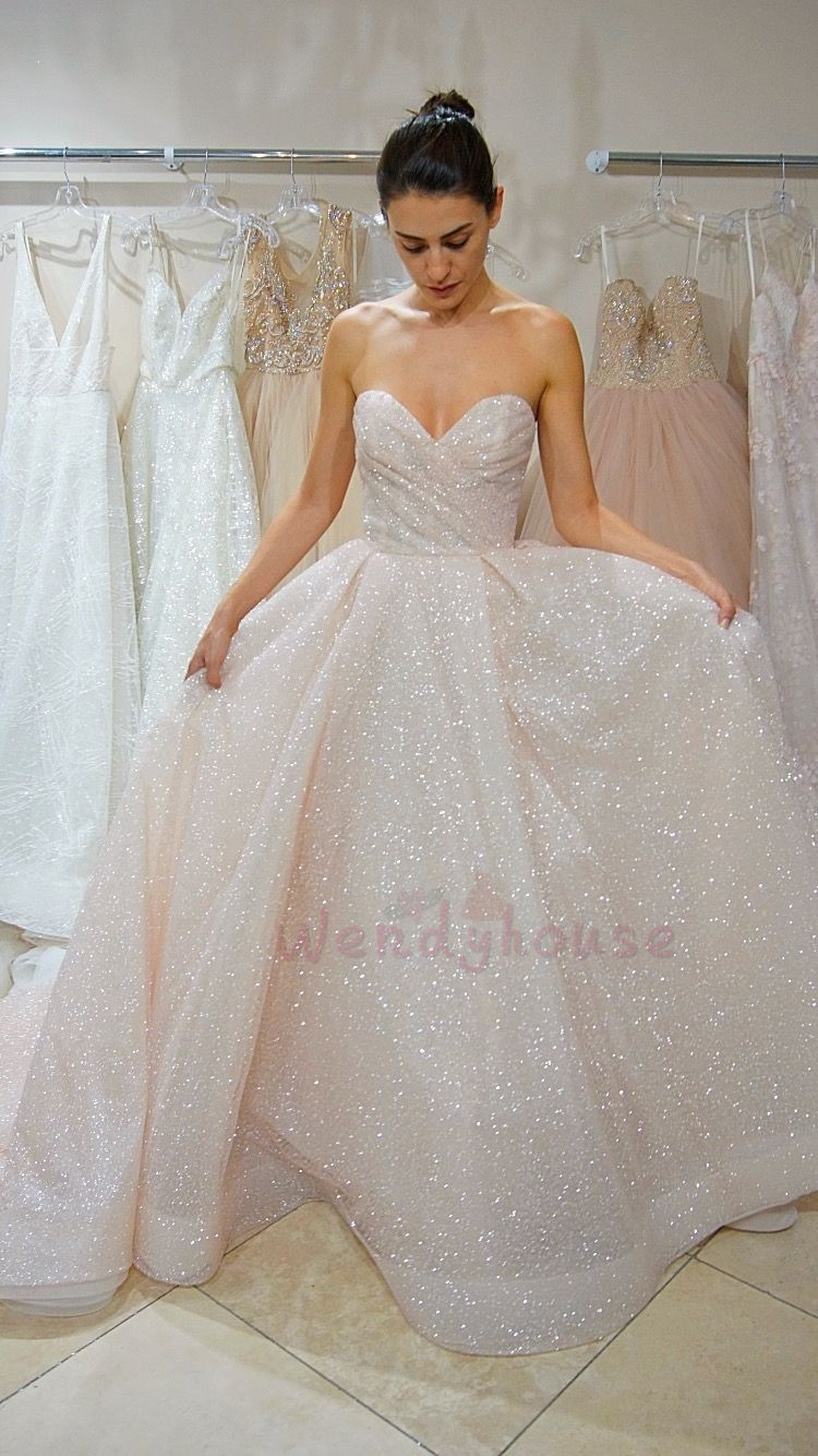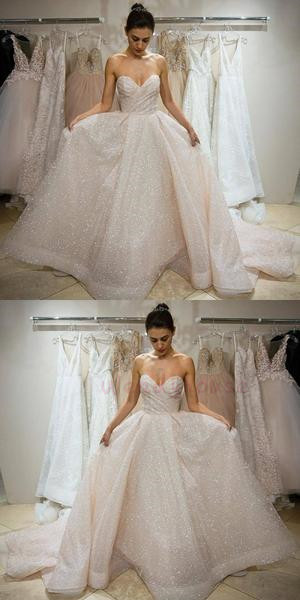 Sparkly Ivory Strapless Long Wedding Dress with Train,867