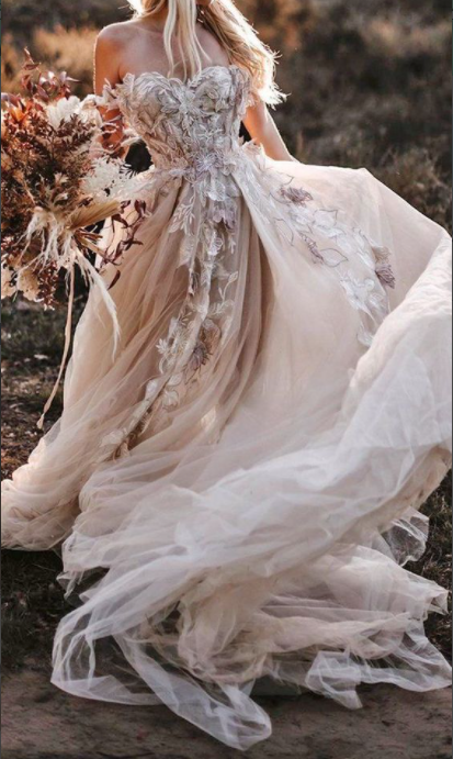 Stunning Off the Shoulder Ivory Tulle Lace Wedding Dress Spring Bridal Dress,951