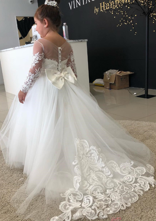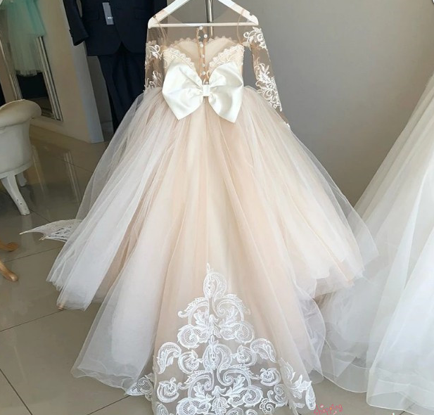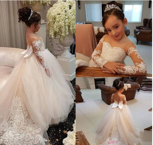 Adorable Long Sleeves Blush Flower Girl Dress with Lace,794