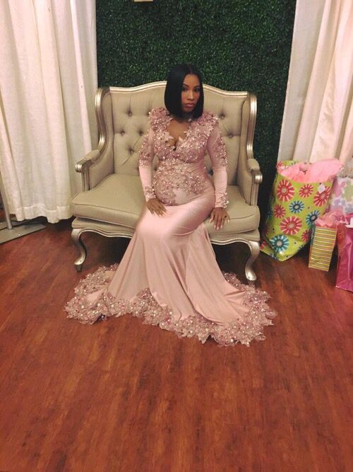 Long Sleeves Appliques Full Circle Maternity Gown, Long train, Short lining maternity dress, baby shower dress, 055
