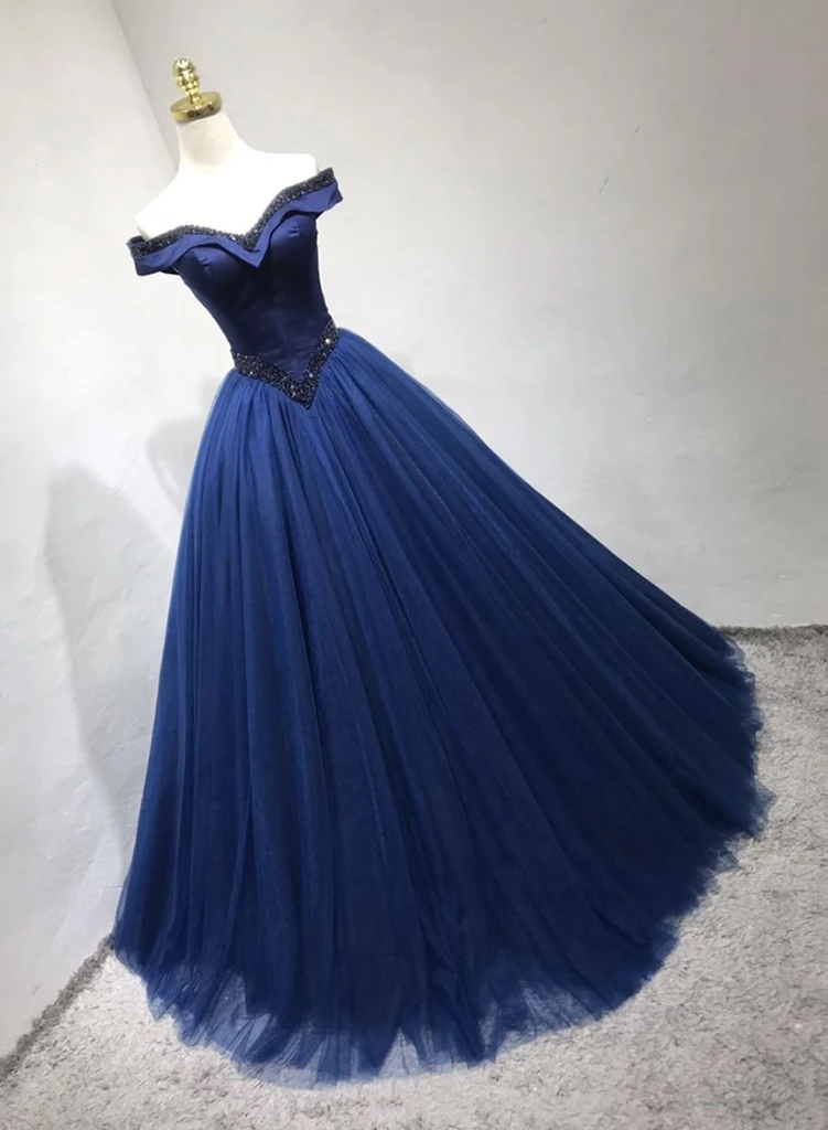 Princess A Line Off the Shoulder Navy Blue Long Prom/Evening Dress,980